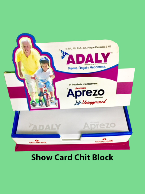 Catalogues, Leaflets, Journals, Newsletters, Hard Galley Bound / Spiral / Wiro Visual-Aids / Pads, Brochures, Calendars, Carry Bags, Scratch Cards, Annual Reports, Posters, Danglers, Stickers, variety of Die punched Rx / Cube/ Chit pads, Dispensers and any types of pop-ups and many more.